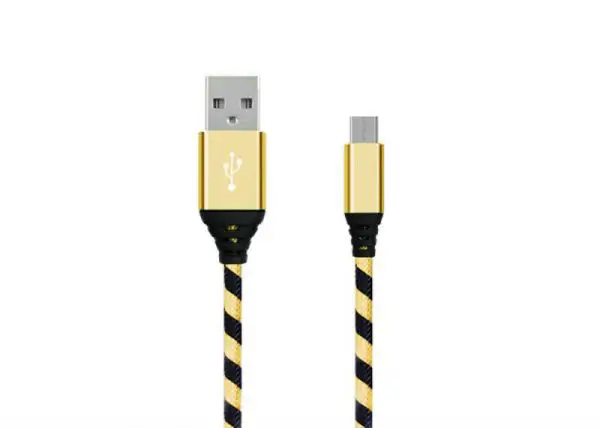 This is a strong, durable, black and gold USB x Micro USB Cable.