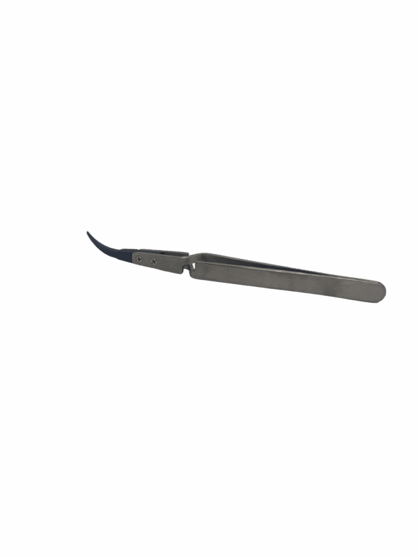Curved End Tweezers: Offers a unique advantage for accessing hard-to-reach areas. The angled tip is perfect for maneuvering around motor wires and placing components in the tight, compact layouts of a modern FPV drone.