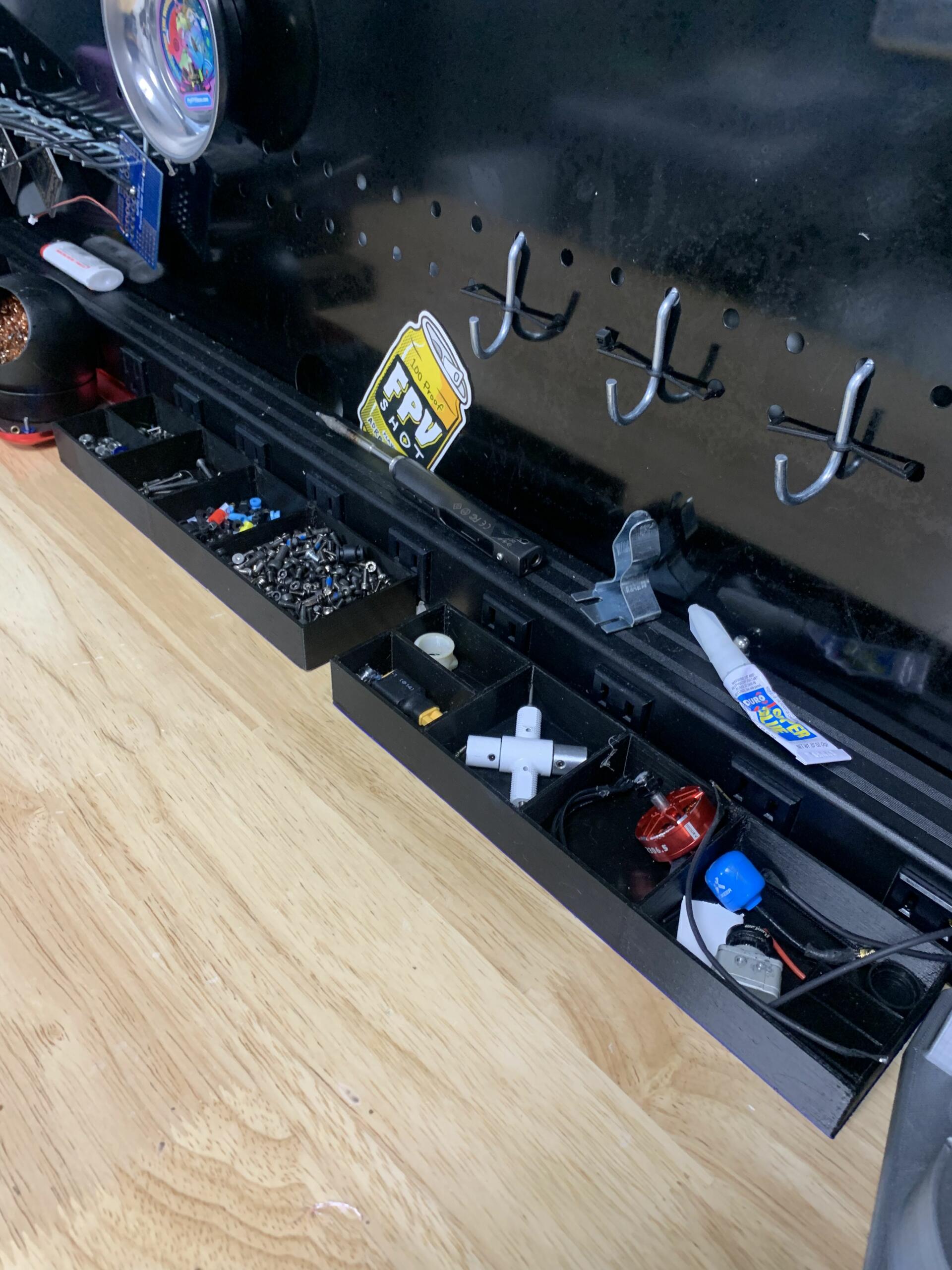 This simple 3D print is made to hold all of your FPV screws and hardware. It is 9.5in by 2.5in, with 5 holders of various sizes for all of your FPV hardware. Pick up one or two and it is all you’ll need for perfect organization.